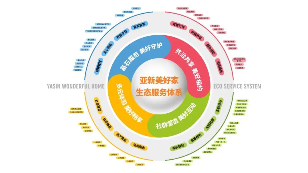 亞新服務傾力構筑“1+N”美化生活體系,“1”指一個引領即黨建引領;“N”指美好生活系列服務,如:美好食堂、美好驛站、美好學堂、美好生鮮、美好水站、美好書吧……在實際落地過程中,精心打造悅彩生活圈,以“人”為核心場景、“場”為核心鏈條、“物”為核心脈絡,推進零售、美居、美家、空間、傳媒、資產、金服等服務內容,讓悅彩生活成為連結物業、鄰居、以及各類服務資源的橋梁和紐帶,真正實現多方共贏,繪就美好生活畫卷。