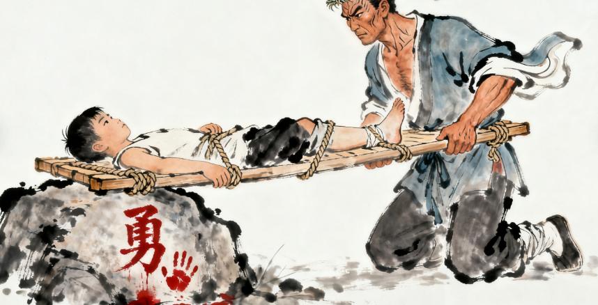 山路崎嶇,到處都是石頭和樹枝,阿福跑得滿頭大汗,可他一點也不敢耽誤。終于,在一處山崖下,他們看到了柱子。柱子躺在地上,腿已經斷了,疼得直哼哼。阿福趕緊跑過去,小心翼翼地把柱子扶起來,用繩子把木板綁在柱子身上,然后和趕來的村民一起,把柱子抬回了鎮上。