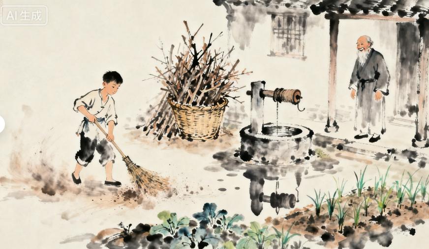 從那以后,阿福就住進了周先生家。周先生家有個小院子,院子里種著幾棵果樹,還有一小塊菜地。阿福每天早上起來,先把院子打掃干凈,然后去挑水、劈柴、種菜,干完這些活,就跟著周先生認字、讀書。