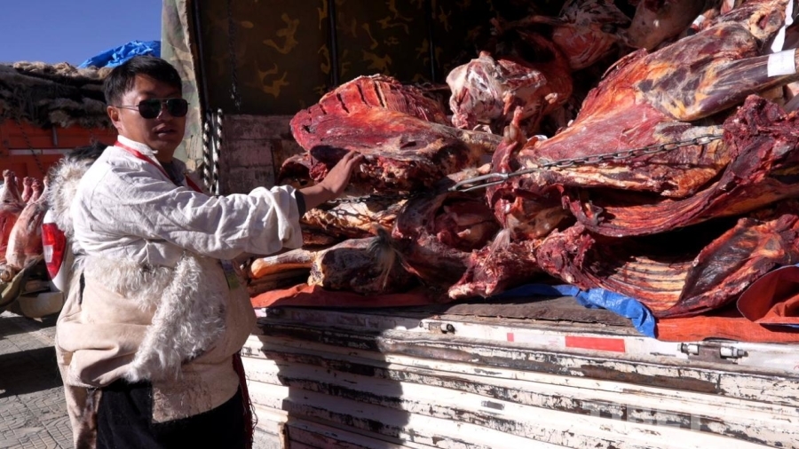 12月15日上午10時許,西藏自治區(qū)那曲市色尼區(qū)物流園區(qū)農(nóng)貿(mào)市場內(nèi)人頭攢動。牧民們正忙碌地從貨車上卸下各類畜牧產(chǎn)品,為即將開幕的那曲市第十八屆畜產(chǎn)品展銷會做最后準備。