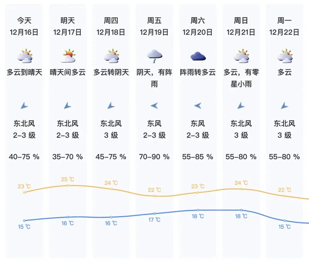 12月17日—18日晴天到多云,氣溫繼續(xù)回升,早晚清涼,白天舒適;