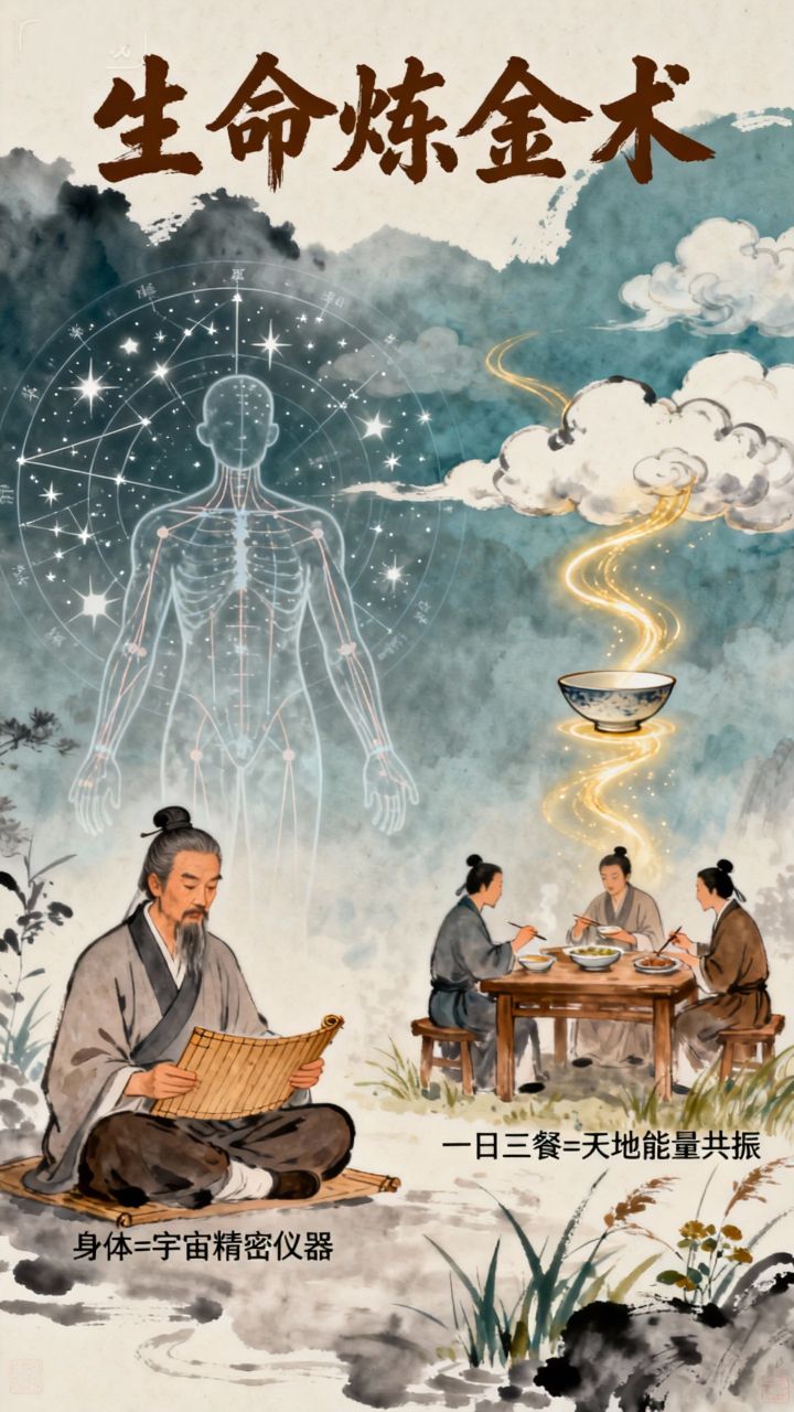 古人留下的,從來不是刻板的教條,而是一套完整的生命煉金術。他們無聲地宣告:你的身體,本就是與宇宙同構的精密儀器;一日三餐,正是你與天地能量每日三次的莊嚴共振。