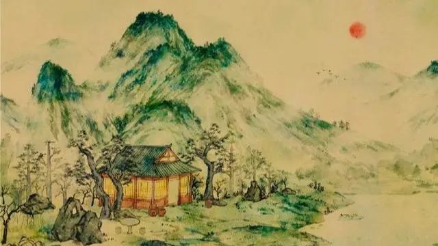 夕陽西下,暮色四合,他獨自一人前往山中拜訪住在茅屋中的高僧。