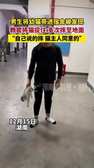 男生將幼貓帶進宿舍被發(fā)現(xiàn),教官將貓捉住多次摔至地面,“自己說的摔貓主人同意的”#社會百態(tài)#教官4