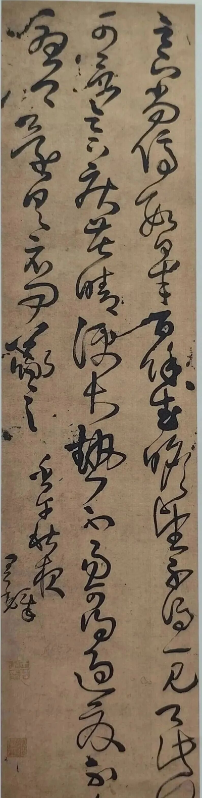 看王鐸這卷草書,第一眼沖擊力往往來自線條的“力道”。這不是蠻力,而是一種高超的“控制力”,核心技巧叫“絞轉”和“殺紙”。簡單說,“絞轉”就是在行筆過程中,手指微微轉動筆桿,讓筆毫不是平拖著走,而是像擰麻花一樣“絞”著前行。你試試看,平拖的線條是扁的、薄的;而“絞”出來的線條,是圓的、厚的、有立體感的,墨色也會有微妙的變化。王鐸這里用得極其熟練,尤其在長線條的中段,你能感覺到線條內部像有根“筋”在扭動,充滿張力。
