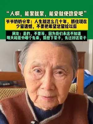 12月15日(發布)#天津 “人啊,能聚就聚,能愛就使勁愛吧”,爺爺奶奶分享:人生就這么幾十年,抓住現在,少留遺憾,不要把希望總留給以后。網友:是的,不要等,因為我們永遠不知道,明天和意外哪個先來,別想下輩子,先過好這輩子。