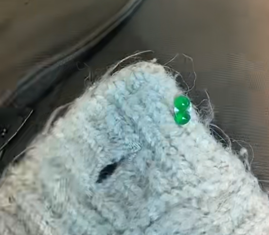 12月12日,廣東揭陽的竇女士在玉器市場購物,在第一家檔口查看商品時,一對翡翠耳環無意間粘在了她的毛衣衣擺上。