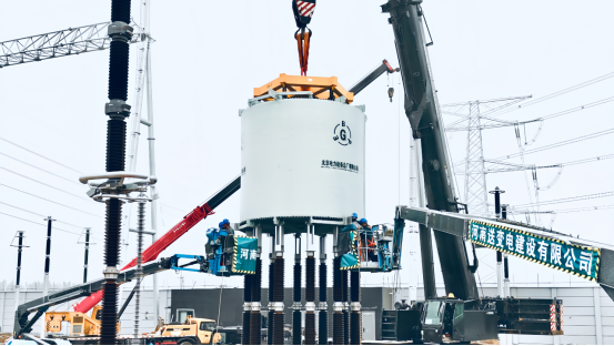 河南送變電建設有限公司電力職工開展電抗器安裝工作。(夏然)