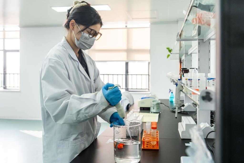 12月1日,在津市高新區的湖南慕恩生物科技有限公司微生物實驗室,實驗人員檢測送檢樣品成分。新華社記者 陳思汗 攝
