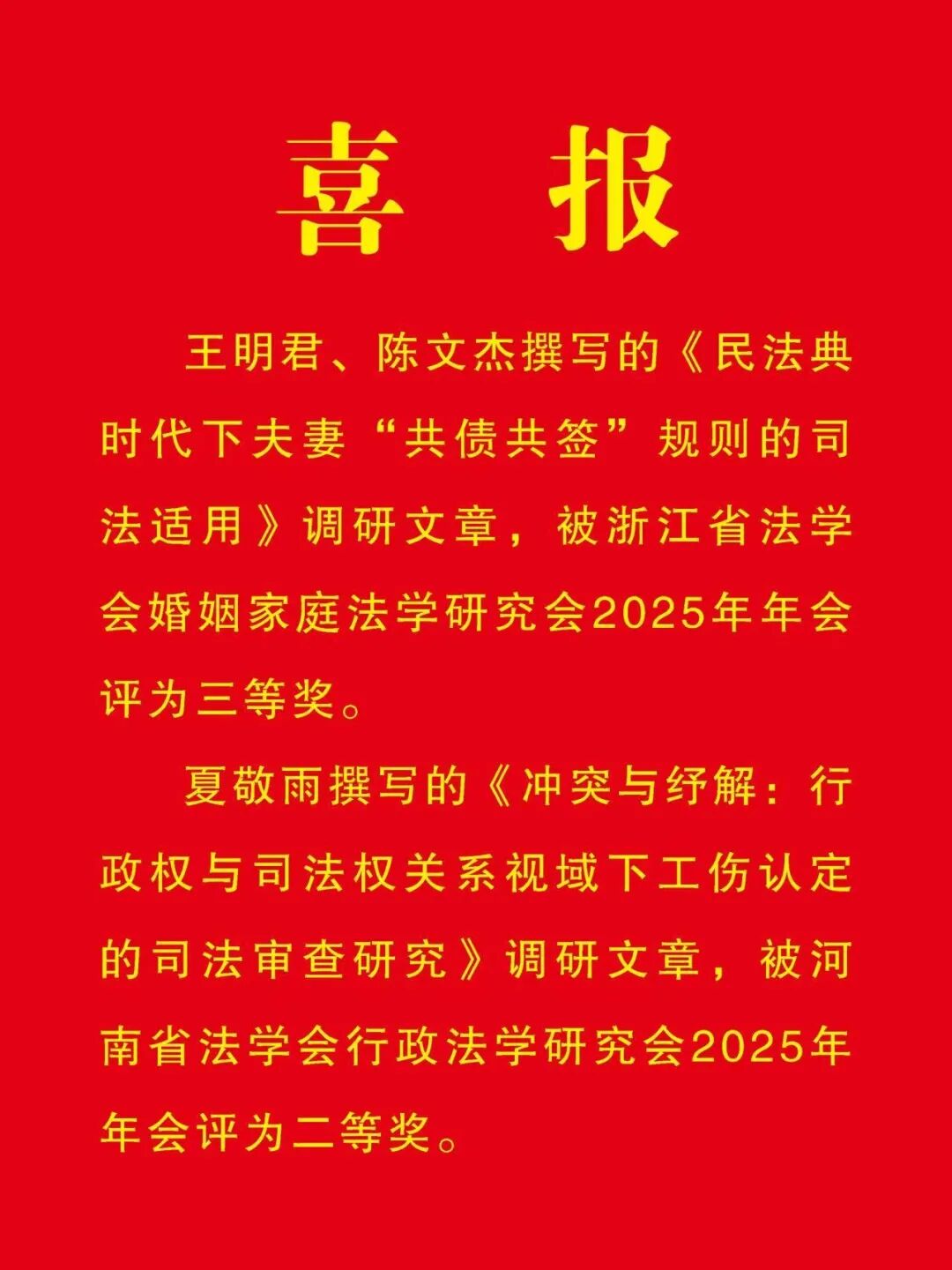 喜報!寶豐法院論文在省法學會行政法學研究會年會獲獎