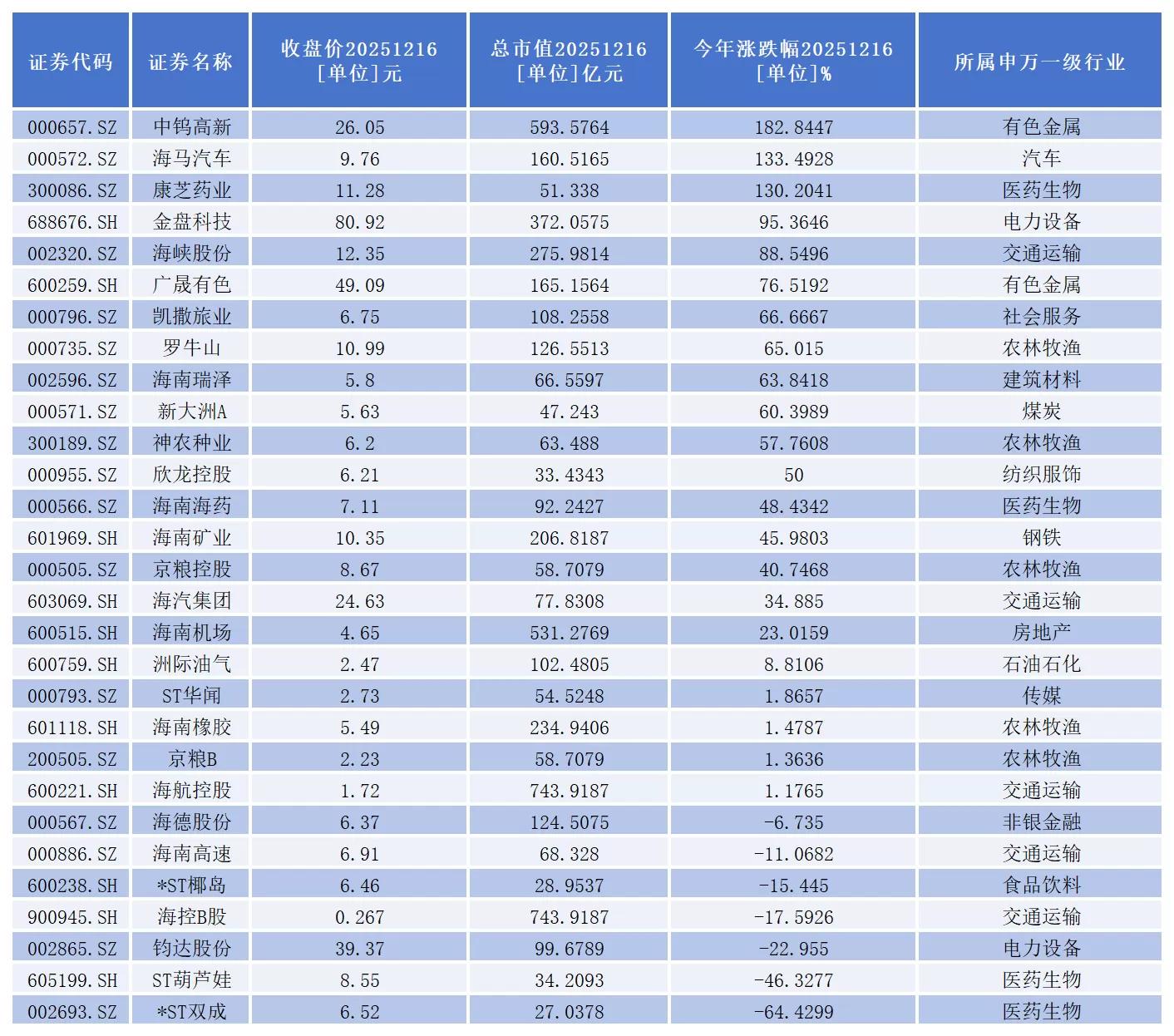 同花順數據顯示,目前,A股海南地區一共有29家上市公司。