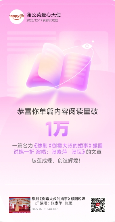 分享榮譽▏豫劇《倒霉大叔的婚事》猴圈說媒一折 瀏覽量破萬啦!