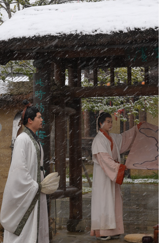在諸葛故居前,不僅能看到劉備《三顧茅廬》的誠心演繹,還能觀賞《諸葛書場》《諸葛菜智慧吧》等創新演繹。NPC還會與游客互動合影,氛圍感拉滿。