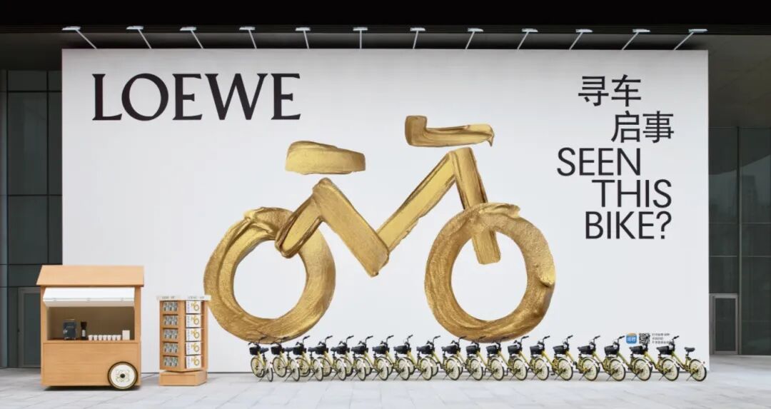 今年年初Loewe就和哈啰單車合作推出「羅意威金色騎旅」限時體驗活動,在上海街頭投放限定款金色共享單車,用戶累計騎行 3 公里即可獲得限定勛章,領取限定畫報、咖啡等贈品。這次跨界合作掀起了上海市民的騎行熱潮,預約騎行名額幾乎“秒搶光”,短短數天內小紅書平臺話題瀏覽量就接近300萬。