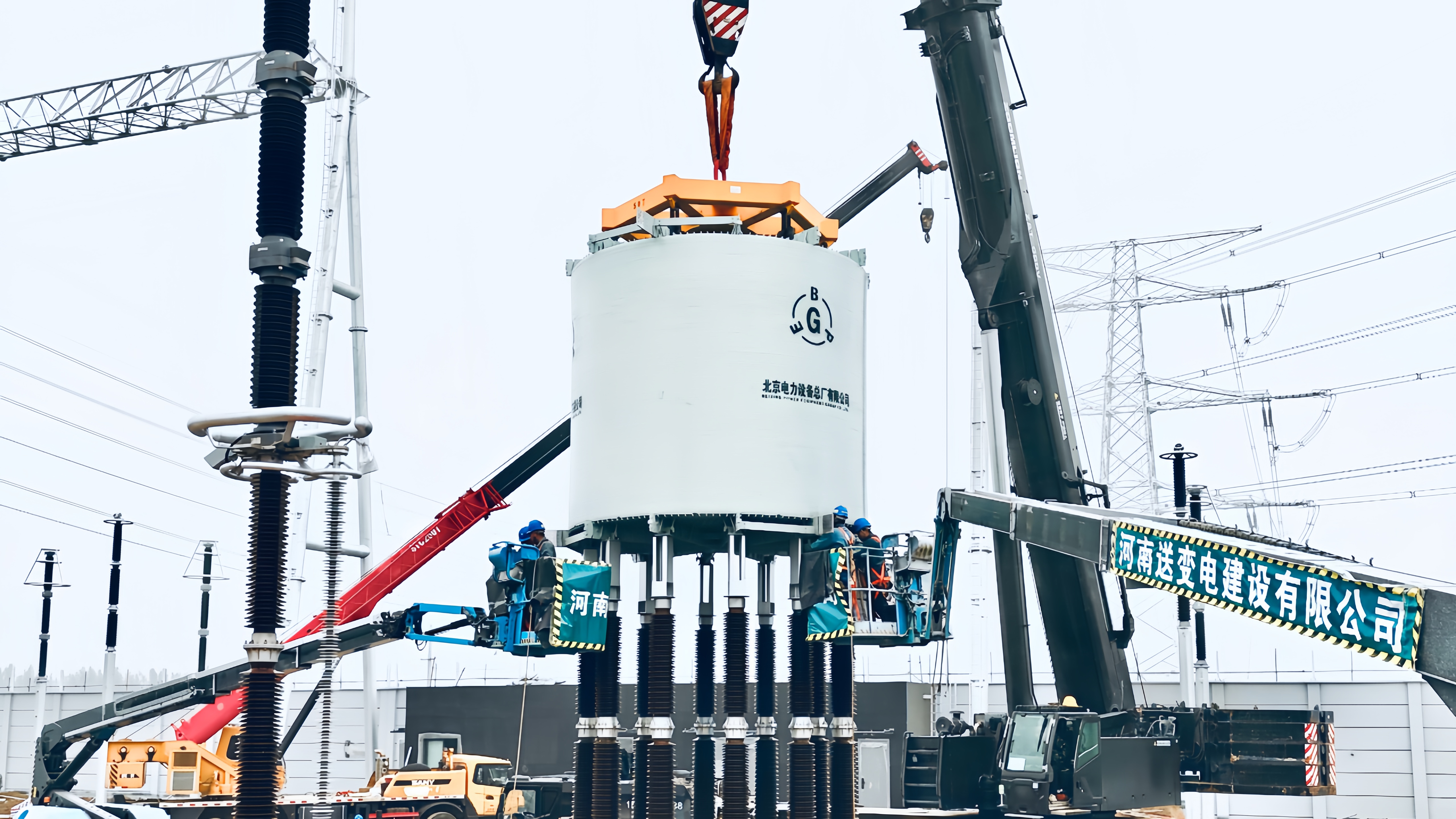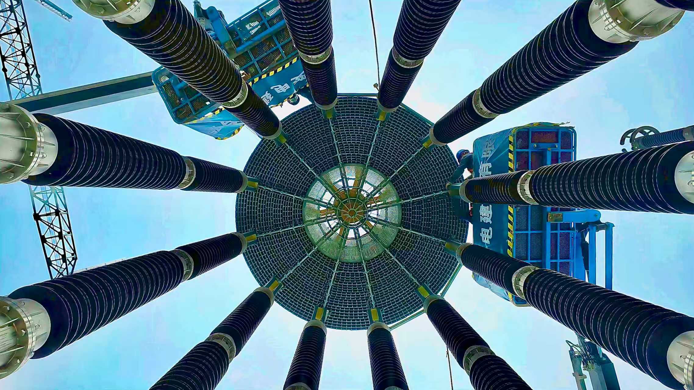 河南送變電建設(shè)有限公司電力職工開展電抗器安裝工作。夏然 攝