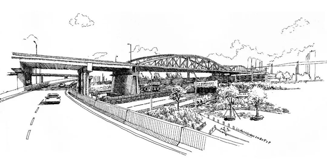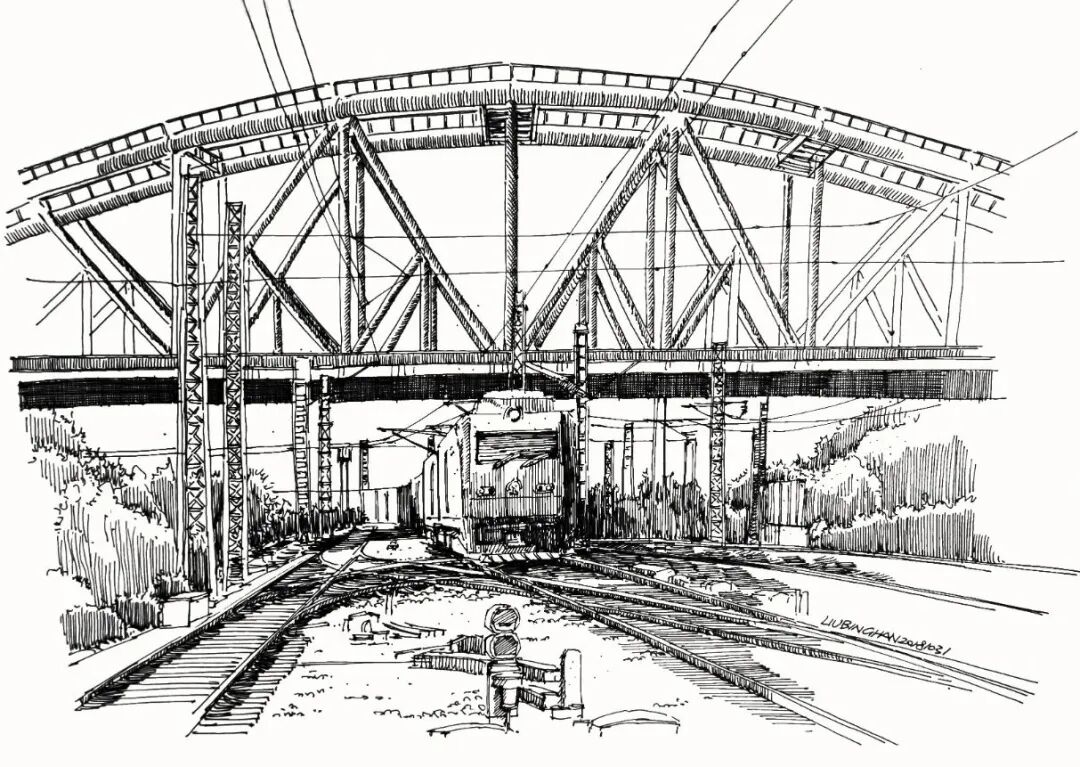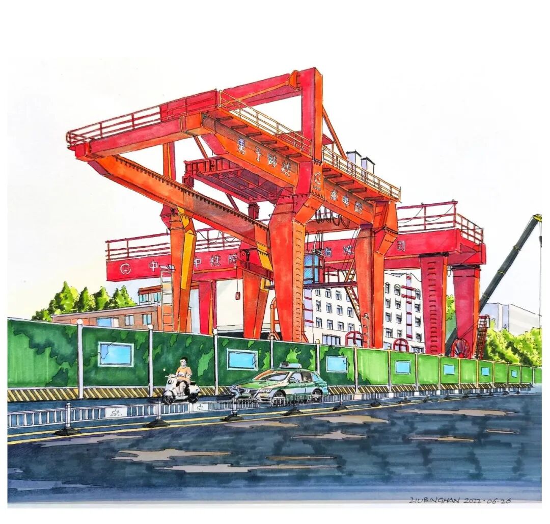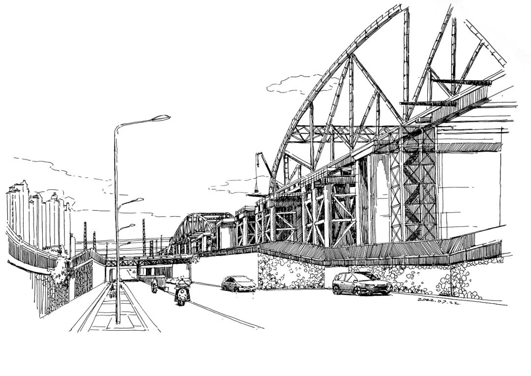 2021.7-2023.8之間的彩虹橋,第一張是老橋的拆除時期,第二張是新橋的建設時期。很幸運我用畫筆都把它們記錄了下來。