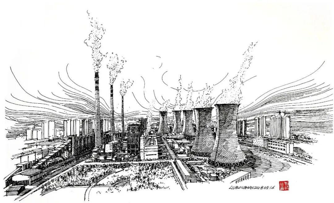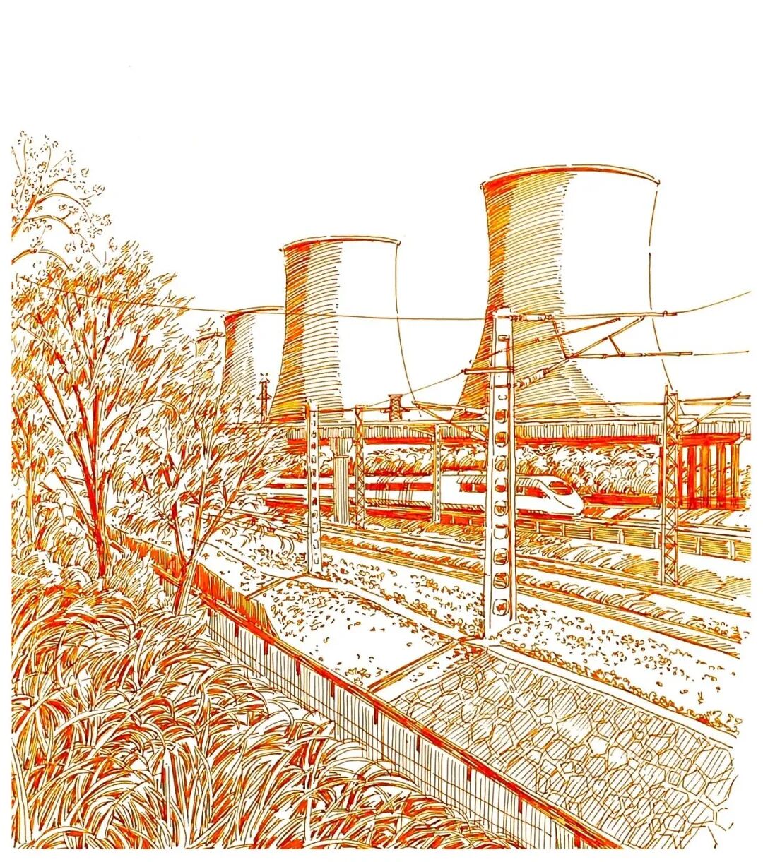 以前在東陳五寨公園邊上,熱電廠的冷卻塔前高鐵呼嘯而過,很有種工業時代的美感。