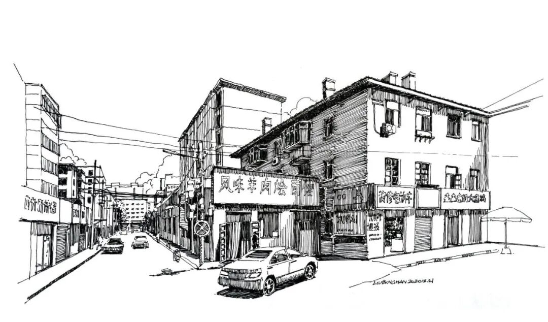 棉紡東路最近在改造,畫里的燴面館堅持了很多年,現在也搬走了。