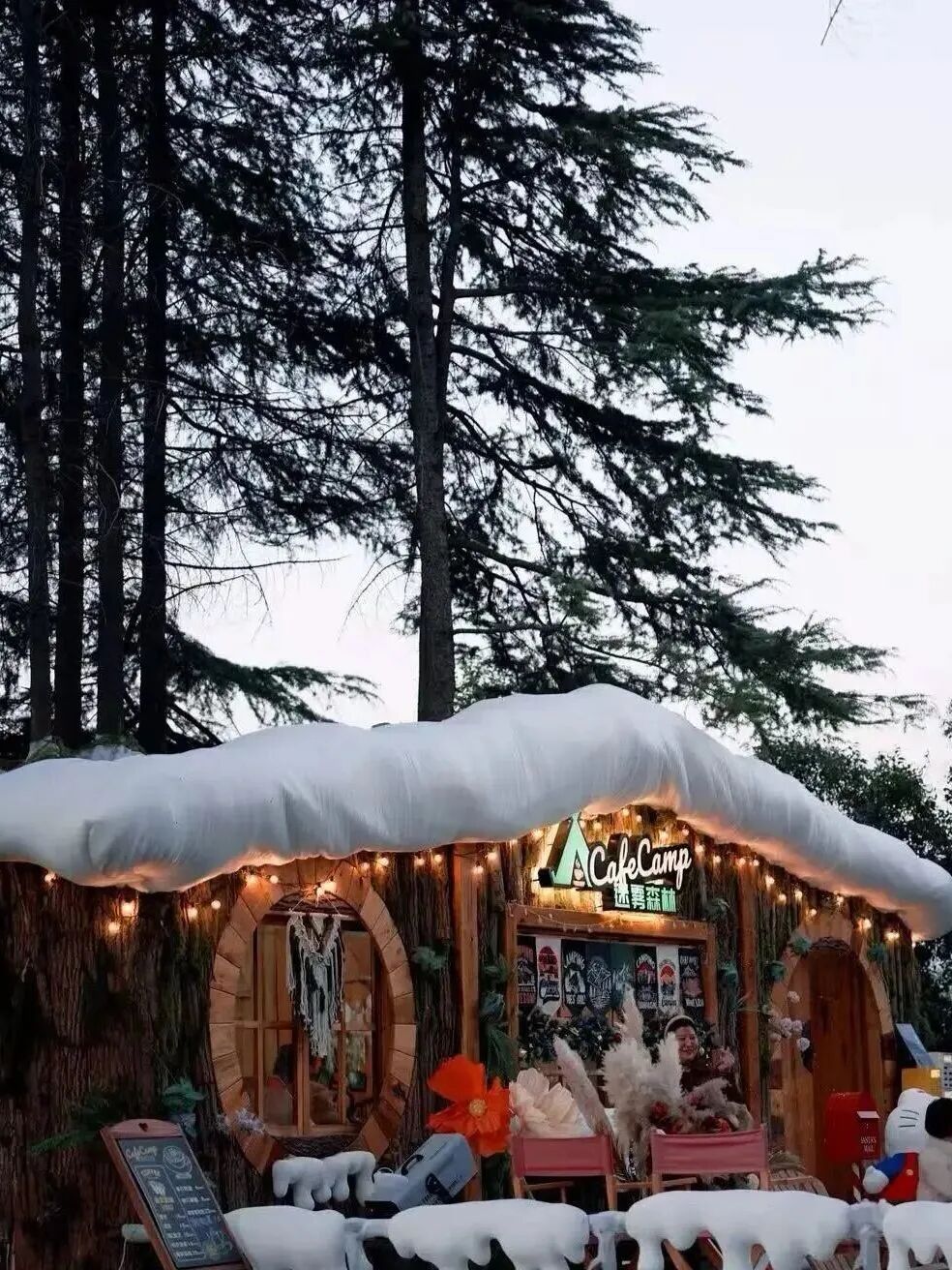 還記得嵩縣南莊迷霧森林里的那個咖啡營地么?這個冬天,林中咖啡屋變身浪漫森林雪屋,冬天的氛圍感直接拉滿!