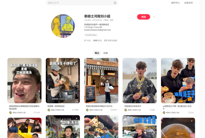 小紅書博主@泰晤士河南劉小超,在倫敦開了英國第一家胡辣湯店。
