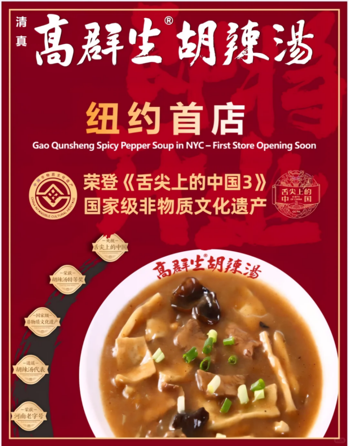 高群生胡辣湯是從周口西華縣逍遙鎮出來的老店,這幾年在鄭州也有幾家店,現在直接懟到紐約了。