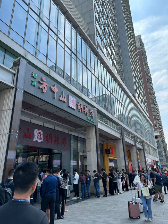 2023年9月,方中山胡辣湯北京首店開業,凌晨4點就有人排隊等候,店外排起25米長隊,取餐時間超過45分鐘。開業一個多月后,排隊現象依然火爆,中午高峰期需等1小時才能取到餐。有網友調侃:"為喝碗胡辣湯,排隊3小時,高鐵都夠回鄭州了!"