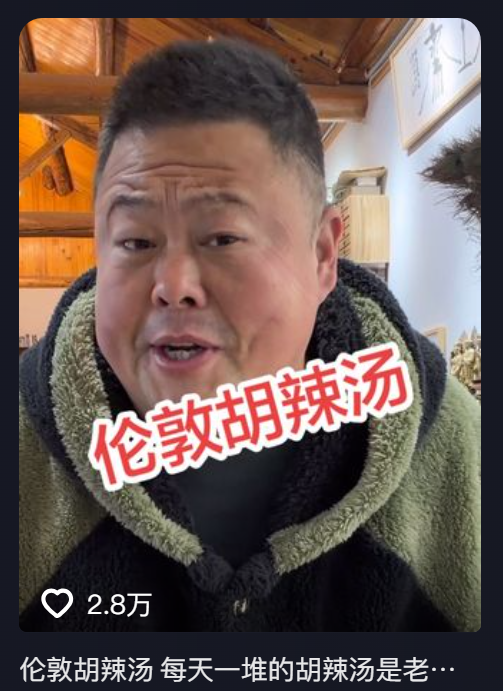 “作為一個土生土長的老倫敦,從小在泰晤士河南岸長大……早上說啥也得懟碗胡辣湯……”