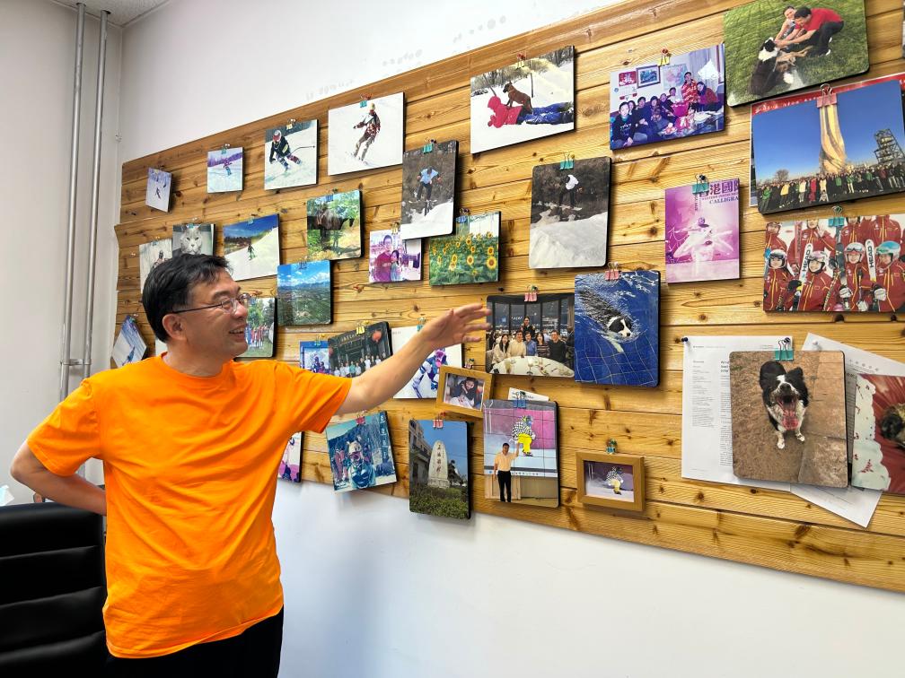 研究太陽能熱發電的科學家王志峰對冰雪運動有十足的熱情。他辦公室有一面照片墻,上面全是他和家人在雪道上俯沖、轉彎的照片。