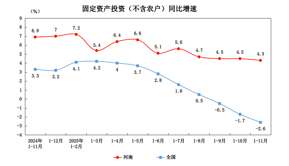 2025年1-11月,全省固定資產投資(不含農戶)同比增長4.3%,高于全國6.9個百分點。其中,民間投資增長6.8%。