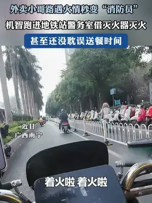 外賣小哥疾馳追車滅火,送餐救火兩不誤。#救火 #外賣小哥 #正能量