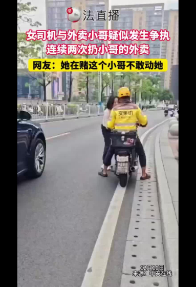 女司機和外賣小哥起沖突,扔小哥的外賣