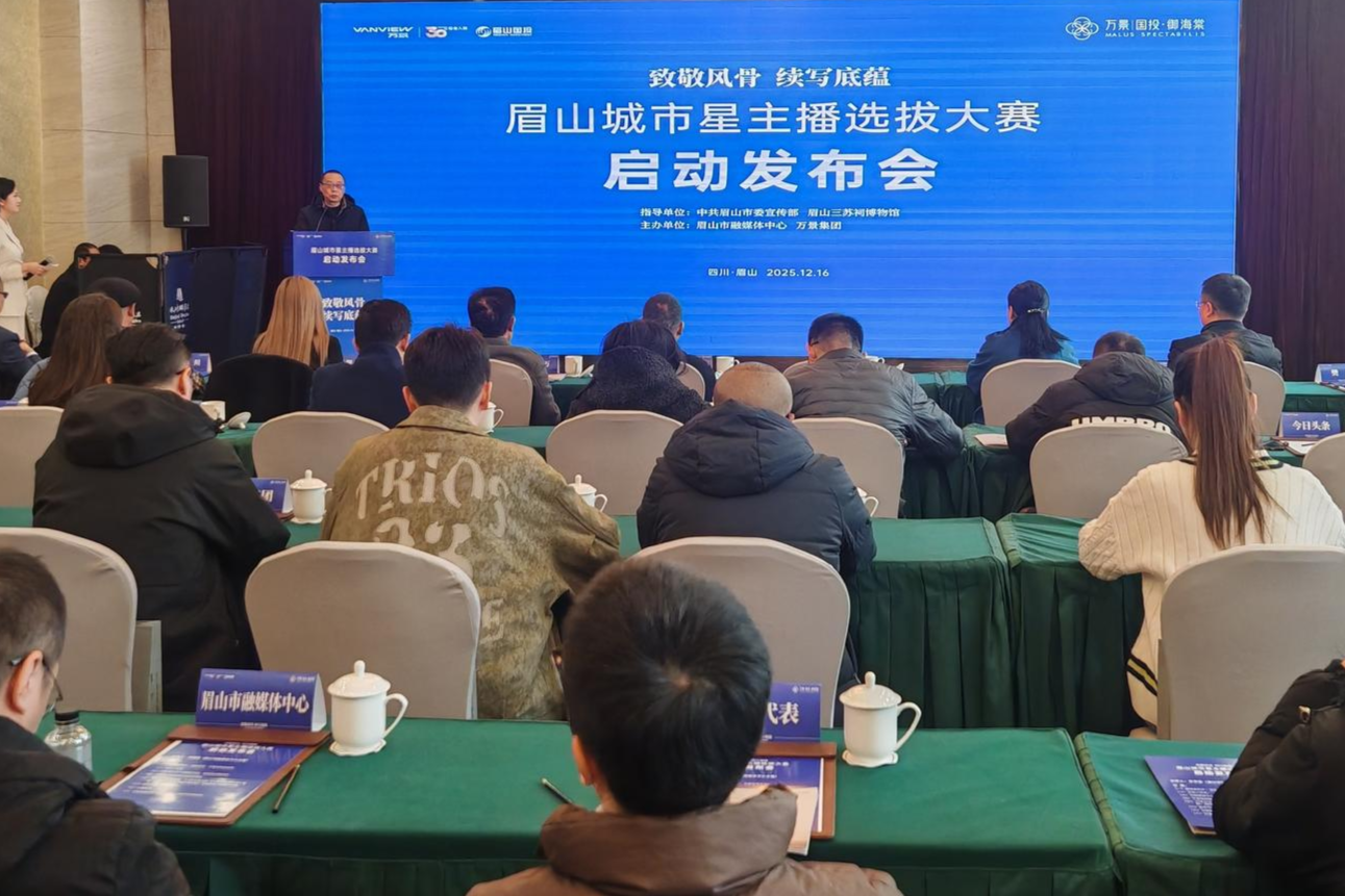 當天,由眉山市委宣傳部、眉山三蘇祠博物館擔任指導單位的“致敬風骨,續寫底蘊——眉山市城市星主播選拔大賽”舉行新聞發布會。發布會上,相關人員介紹了眉山城市星主播選拔大賽活動報名通道、賽程節點、獎項設置及后續傳播規劃。三蘇祠博物館、眉山文化名人等還分別從文化傳承與城市發展角度,闡釋了活動意義。
