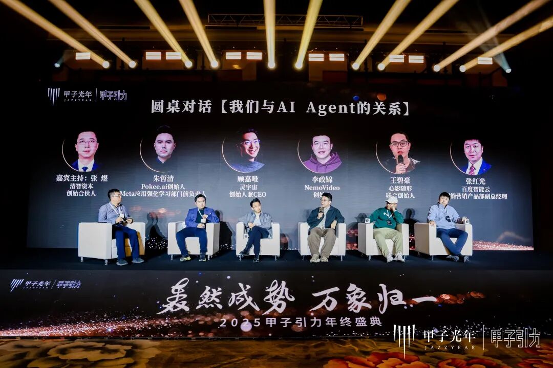 12月3日下午,在2025甲子引力年終盛典中,清智資本創始合伙人張煜作為嘉賓主持人,對話Pokee.ai創始人朱哲清、靈宇宙創始人顧嘉唯、NemoVideo創始人李政錦、心影隨形聯合創始人王碧豪、百度智能云智能營銷產品部副總經理張紅光,圍繞《我們與AI?Agent的關系》這一主題展開了深入探討。