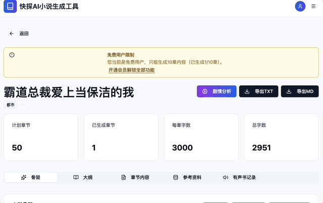 我們實際上手體驗了一下,這個工具生成的小說章節邏輯比較穩定,不容易亂跳,內容也相對緊湊,整體完成度和可讀性都還不錯。
