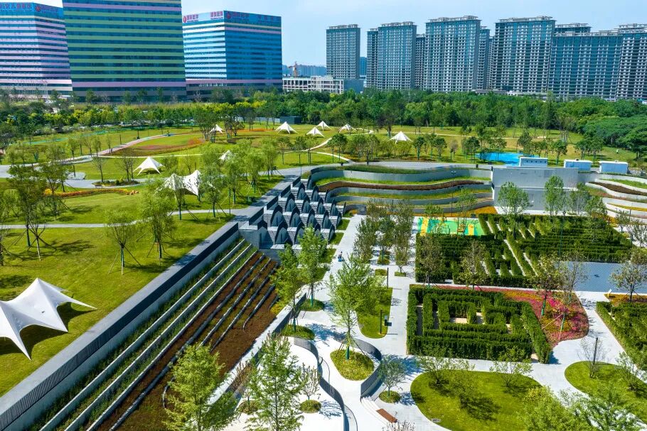 在明確有遺址埋藏的區域,設計團隊設置蜿蜒的步行小徑和休憩平臺,進行最低干擾的展示;在其他區域,則營造出立體的活動空間、臺階與坡道,使其成為青少年喜愛的運動潮玩地和家庭周末出游的打卡地。