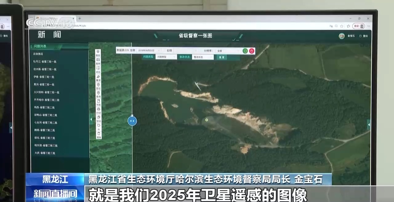 黑龍江省生態環境廳哈爾濱生態環境督察局局長 金寶石:這個圖片就是我們2025年衛星遙感的圖像,可以看到兩個圖片非常鮮明的變化,綠化率提高了。過去我們需要人員到現場進行實地的核查,一般每天一個工作人員只能核查3到5個點位,現在我們通過這項技術,每天每人平均能核查50個點位。