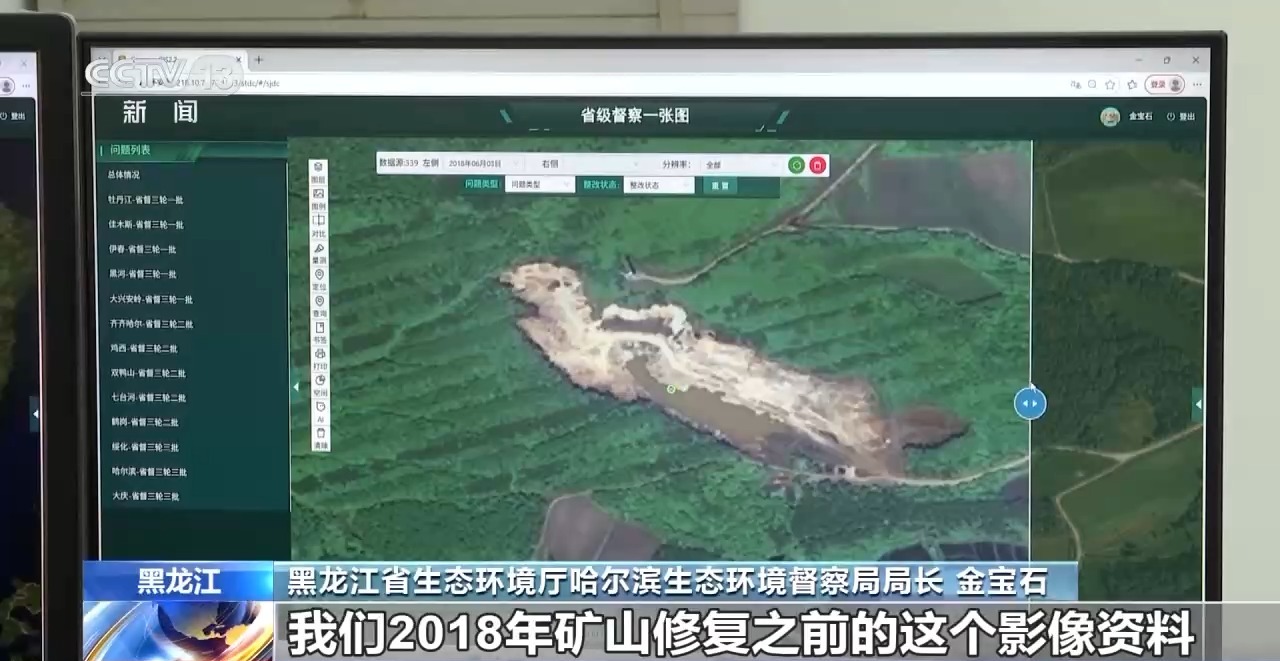 黑龍江省生態環境廳哈爾濱生態環境督察局局長 金寶石:這個圖片就是我們2018年礦山修復之前的影像資料,綠化率是比較低的。