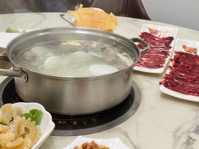 火鍋的核心在于鮮切牛肉與牛骨湯底:選用云貴川地區(qū)的小黃牛,肉質鮮嫩有嚼勁,明檔廚房現點現切,不同部位的牛肉口感各異,吊龍肥瘦相間、匙柄鮮嫩多汁,每一片都帶著原汁原味的鮮香。鍋底是熬制4小時的現熬牛骨清湯鍋,湯色清亮,鮮而不膩,既能凸顯牛肉的本味,又能喝到醇厚的骨香。3份涮菜搭配合理,吸飽湯汁后清爽解膩;自制飲品中的雪梨紅棗茶清甜解辣,無限暢飲超滿足;秘制小料臺選擇豐富,沙茶醬、花生醬、小米辣等隨心搭配,調出專屬風味。