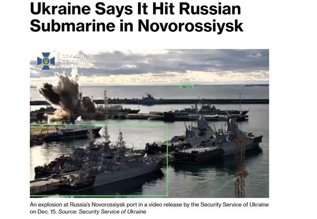 目前西方主流媒體和烏克蘭媒體都大量轉(zhuǎn)載了這一消息,稱襲擊發(fā)生于12月15日的凌晨或者12月14日后半夜,襲擊地點(diǎn)位于俄羅斯黑海地區(qū)的主要港口之一新羅西斯克,這里駐扎了大量俄黑海艦隊(duì)的潛艇和艦艇。它們此前從克里米亞的塞瓦斯托波爾港口撤退至此,就是為了避開烏克蘭的打擊。