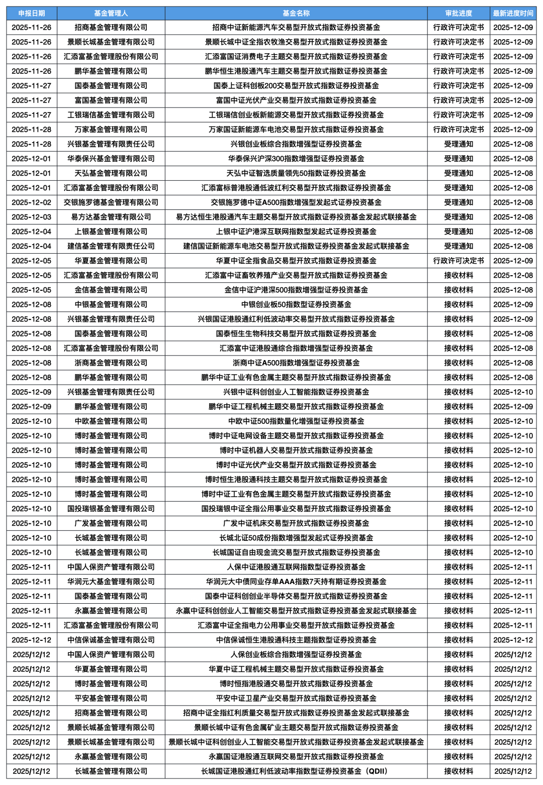 2025年12月08日至2025年12月14日,共有35只基金新申報,17只基金有新進展。
