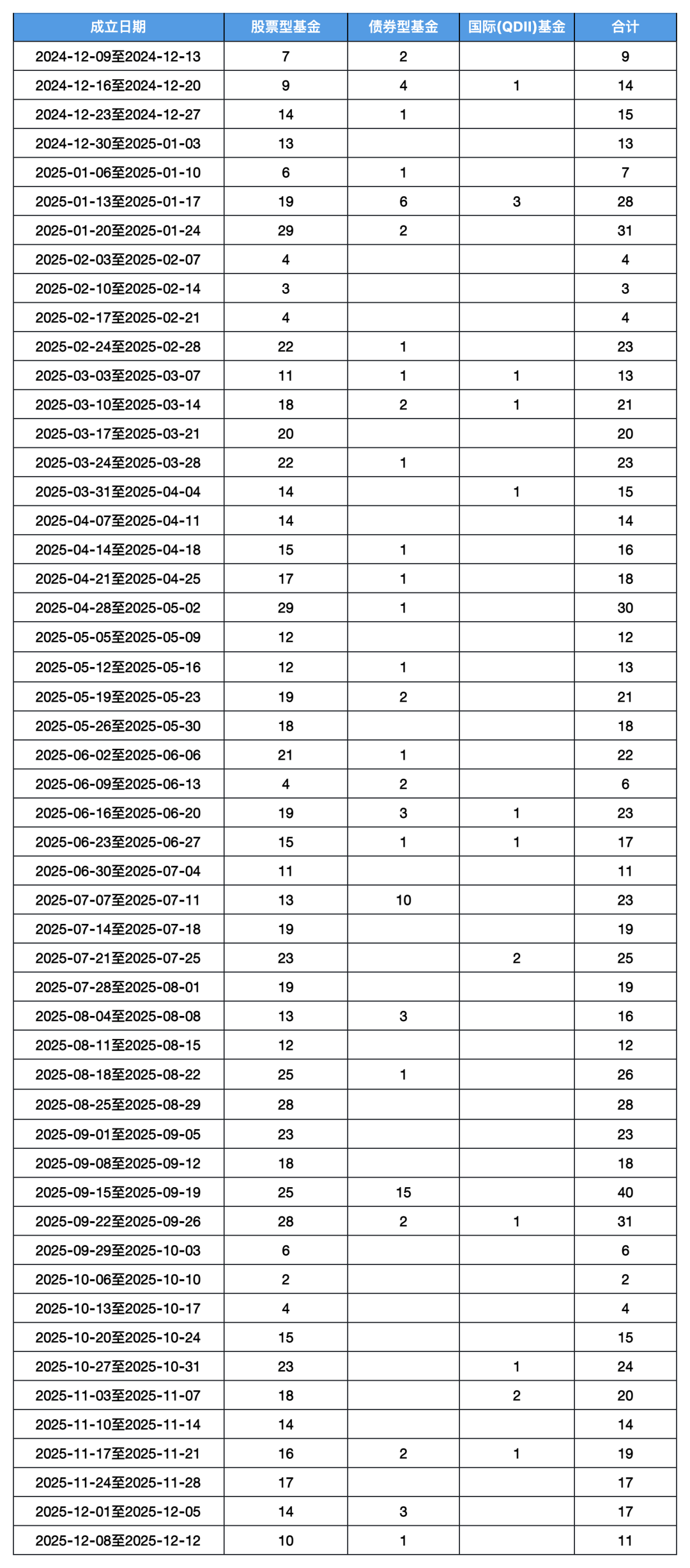 表6?2025年以來成立的指數(shù)基金發(fā)行規(guī)模