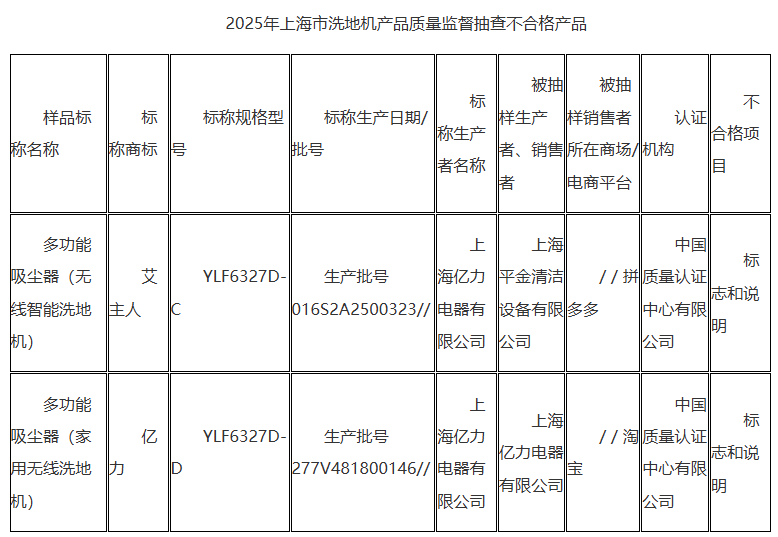 近期,上海市市場監(jiān)督管理局對本市生產(chǎn)、銷售的洗地機(jī)產(chǎn)品開展了質(zhì)量監(jiān)督抽查。本次共抽查?15?批次產(chǎn)品,經(jīng)檢驗發(fā)現(xiàn)?2?批次不合格,不合格產(chǎn)品均來自網(wǎng)絡(luò)銷售渠道。(具體不合格產(chǎn)品詳見附表)