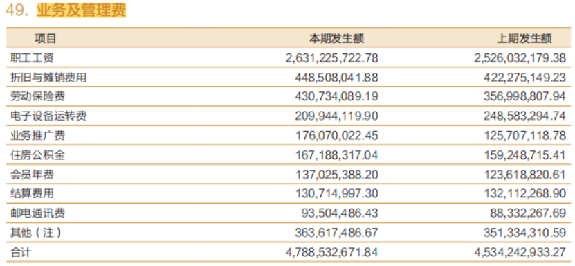 回顧今年上半年,招商證券保持了營收、凈利增長的同時,營業支出也隨之增長。期內,其實現業務及管理費47.88億元,同比增長5.61%。其中,職工工資26.31億元,同比增長4.15%。