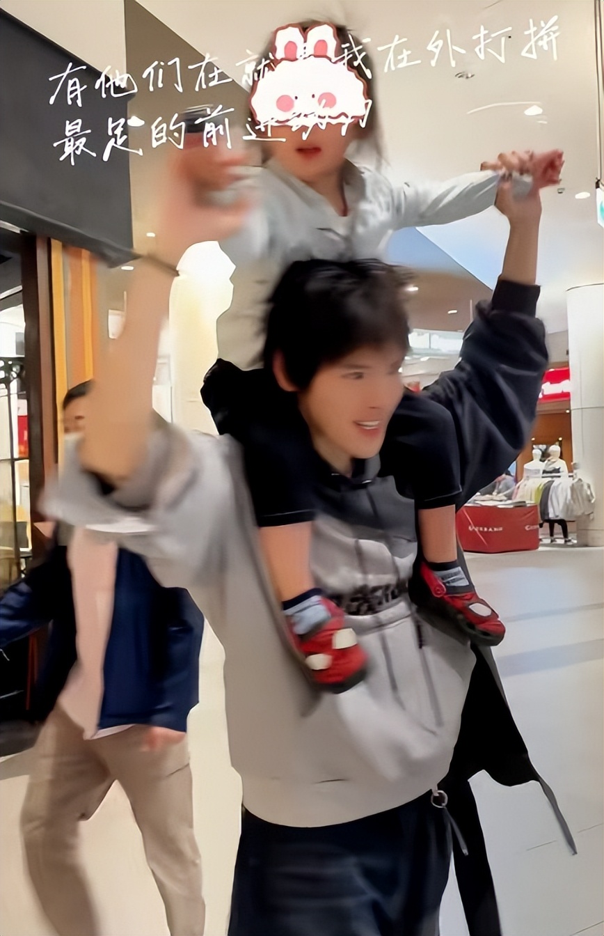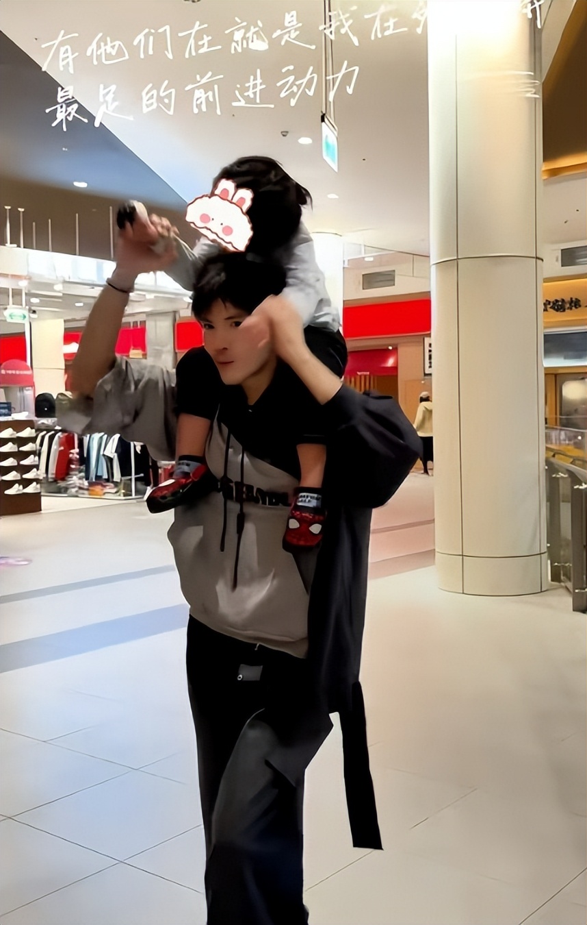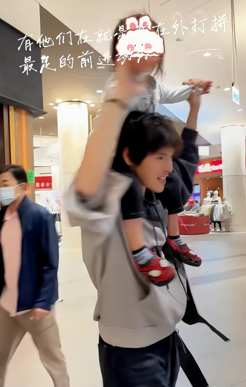 向佐扛著兒子開心玩耍,寶貝在爸爸肩上肆意瘋玩兒,真的是可愛又有愛。