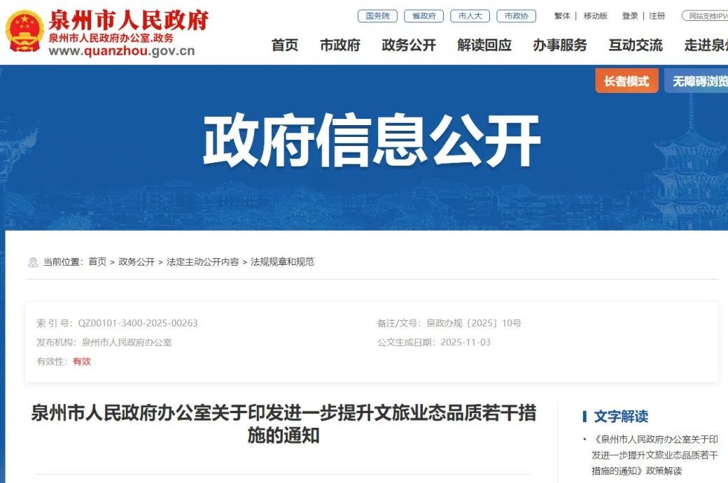 近期,泉州市人民政府辦公室發(fā)布《進(jìn)一步提升文旅業(yè)態(tài)品質(zhì)若干措施》。