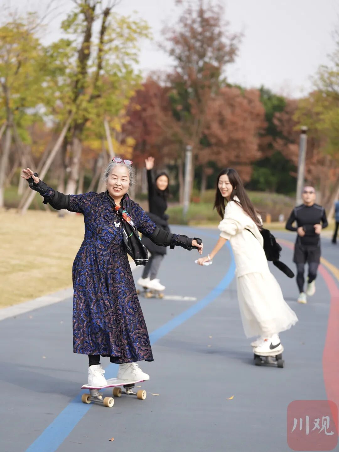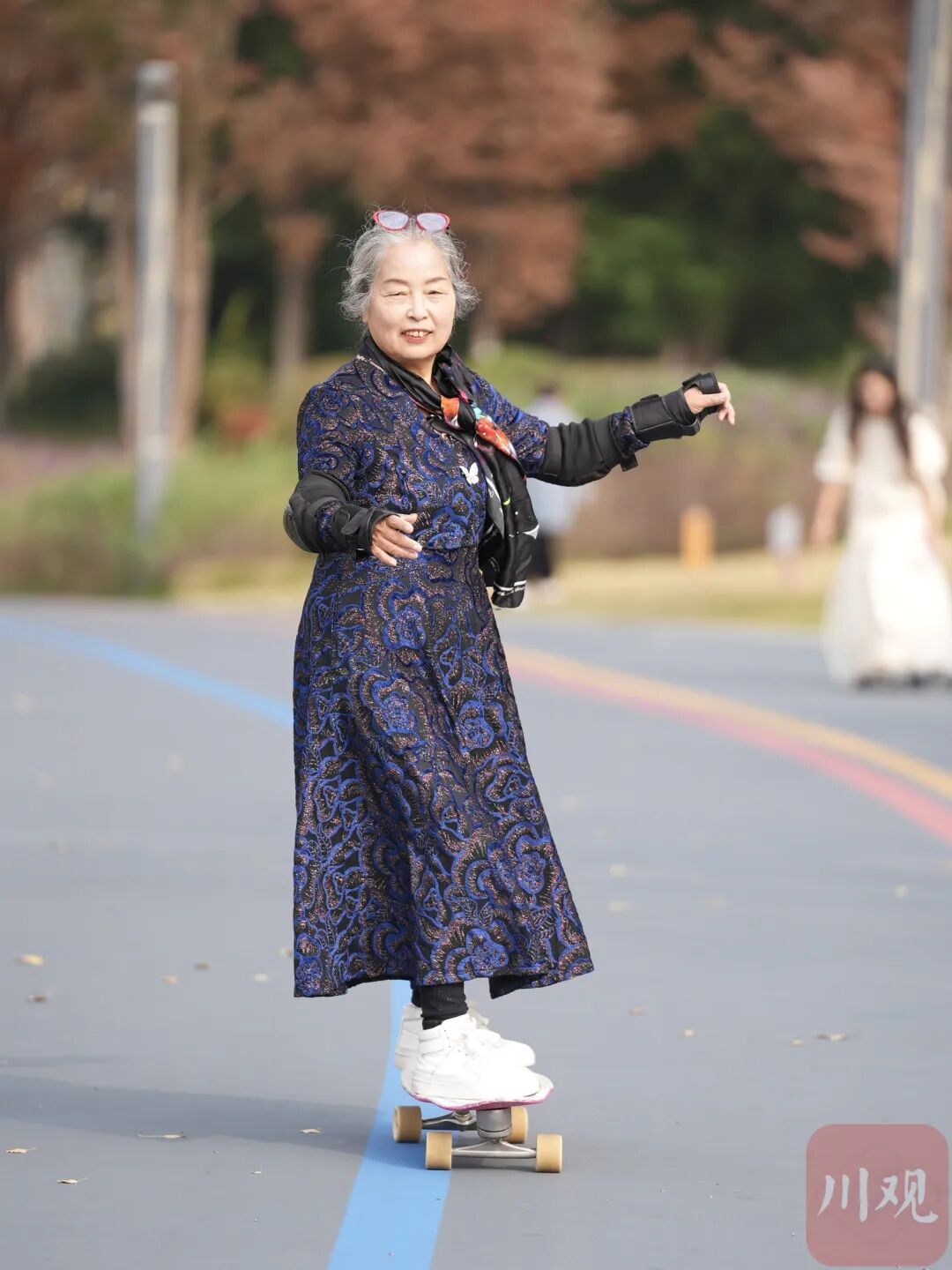 劉阿姨也常會被問“打算滑到什么時候?”她沒有豪言壯語,只是淡然一笑:“沒計劃,最好能滑到80歲。”對她而言,滑板不是一時的獵奇,而是已融入生命的、可持續(xù)的熱愛。