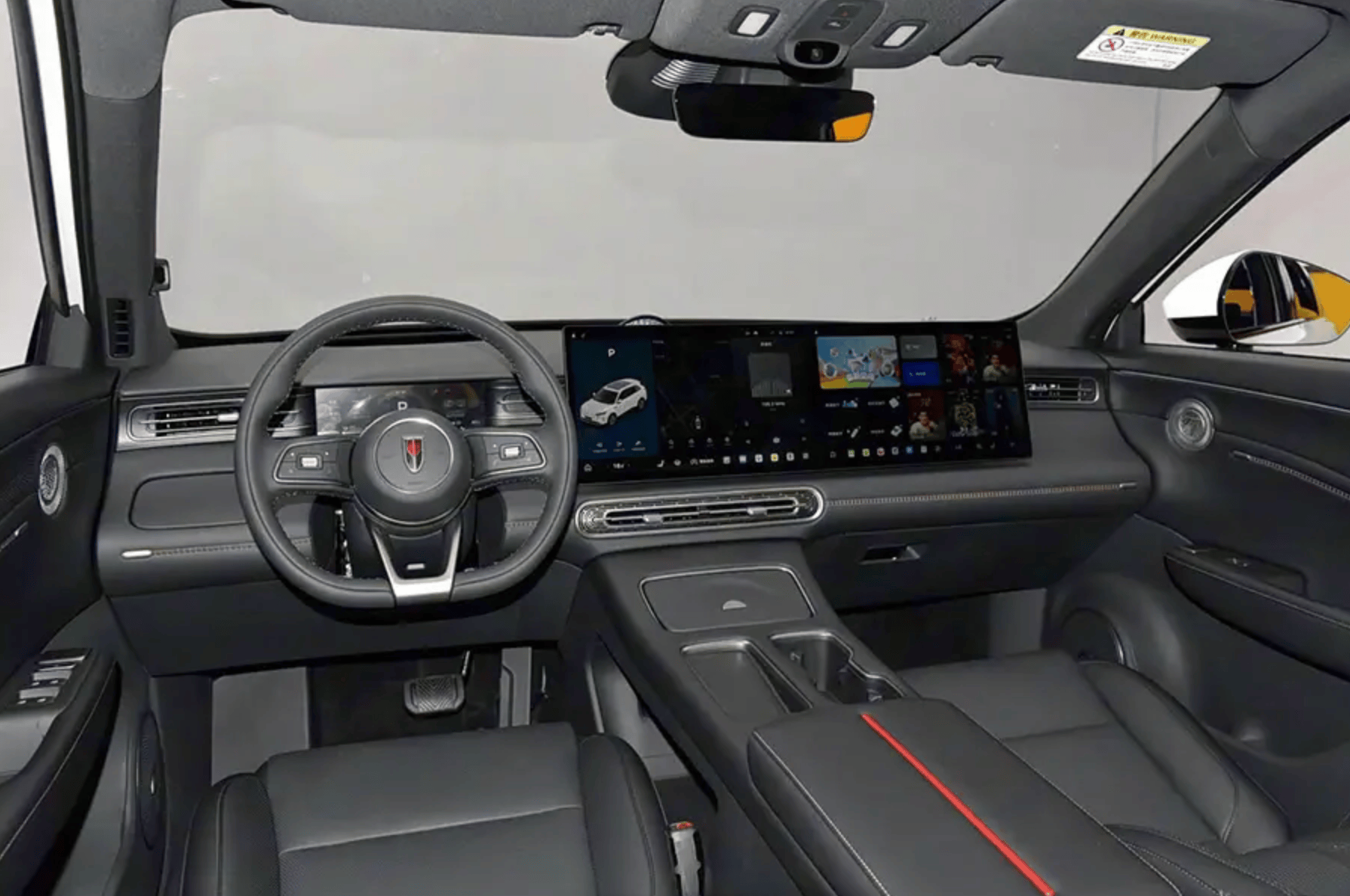 內飾方面,新車采用了內嵌式的小尺寸矩形全液晶儀表盤,并搭配雙色三輻式多功能方向盤,中控臺上配備了多媒體屏與副駕屏的雙聯屏設計,屏幕尺寸和分辨率達到了15.6英寸2.5K,內置高通驍龍8295P芯片。