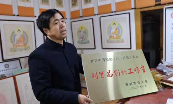 創新思維,實現非遺傳承與發展的具體體現。近年來,尉氏縣先后成立了翟氏嗩吶和云成號木版佛畫傳習基地,鼓勵、引導項目傳承人組織開展形式多樣的非遺傳習活動,有意培養“活態傳承人”。翟氏嗩吶培養學員600余人次,云成號木版佛畫傳習基地先后培訓學員15000多人次。2021年,又建立了云成號木版佛畫展示館,先后接待參觀學生、群眾、專家學者3000多人次。2022年9月,云成號木版佛畫傳習基地被河南省人力資源和社會保障廳、河南省教育廳、河南省財政廳聯合命名為“劉蘭昌木版年畫制作河南省省級技能大師工作室”。2022年12月,云成號木版佛畫傳習基地被開封市總工會命名為“劉蘭昌勞模工匠創新工作室”。
