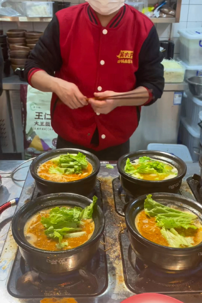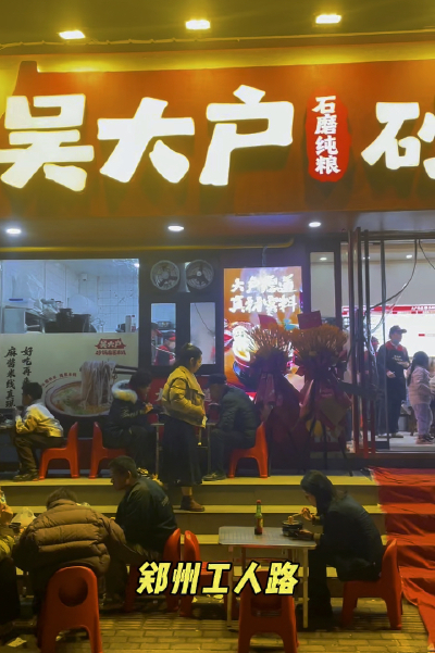 鄭州西郊工人路吳大戶砂鍋米線,店里生意火爆,外面顧客也坐滿了