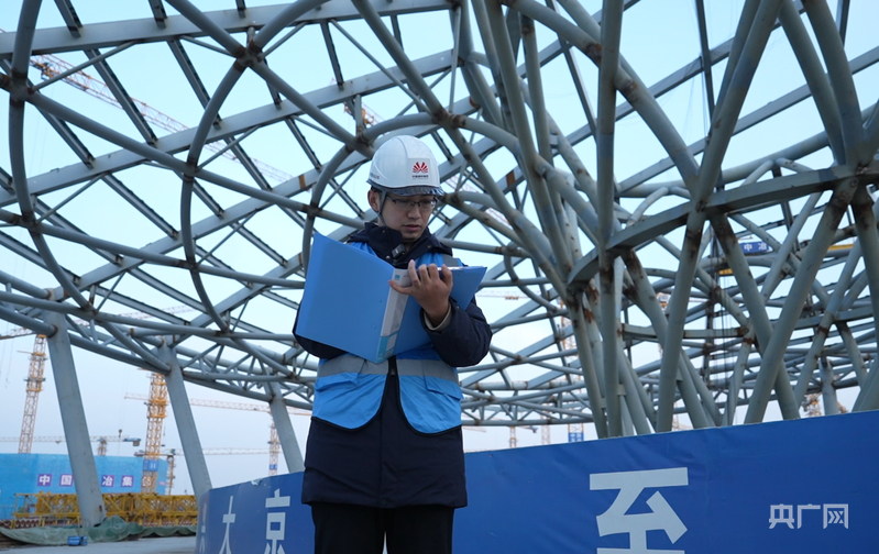 崔浩田在記錄雄安國貿(mào)中心項(xiàng)目建設(shè)進(jìn)度(央廣網(wǎng)記者 王藝霖 攝)